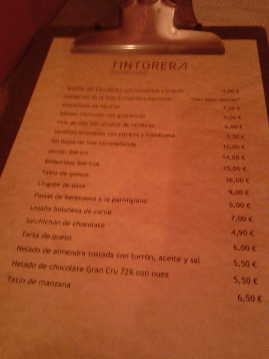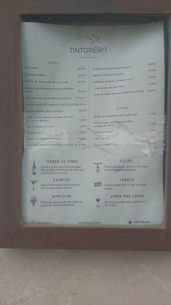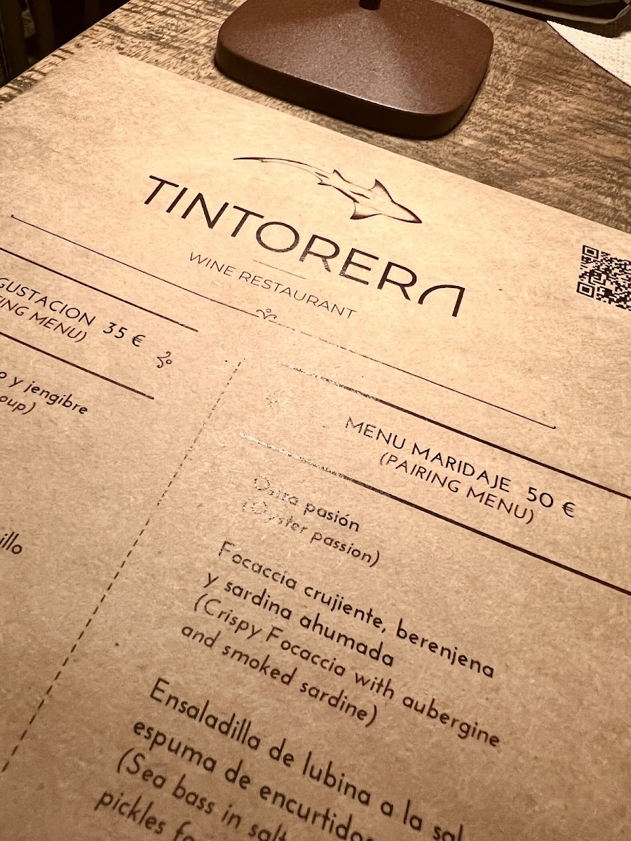 Tintorera Wine Restaurant Menu